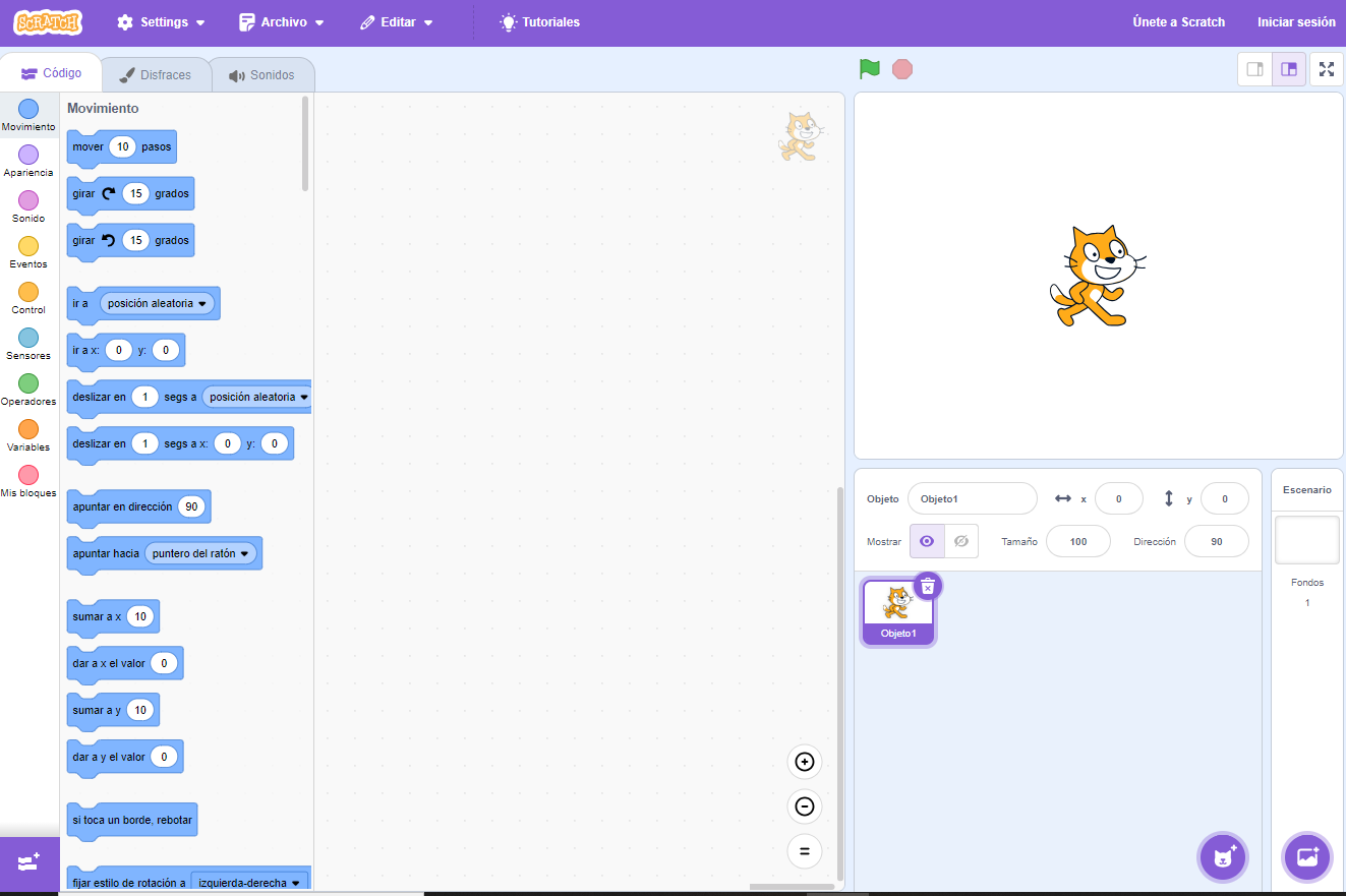 Opción B: Repasa la interfaz de Scratch