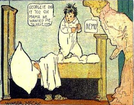 Estas son unas viñetas de unas tiras cómicas llamadas "El pequeño Nemo en el país de los sueños" que su autor Winsor McCay publicó en un periódico neoyorquino entre 1905 y 1911.