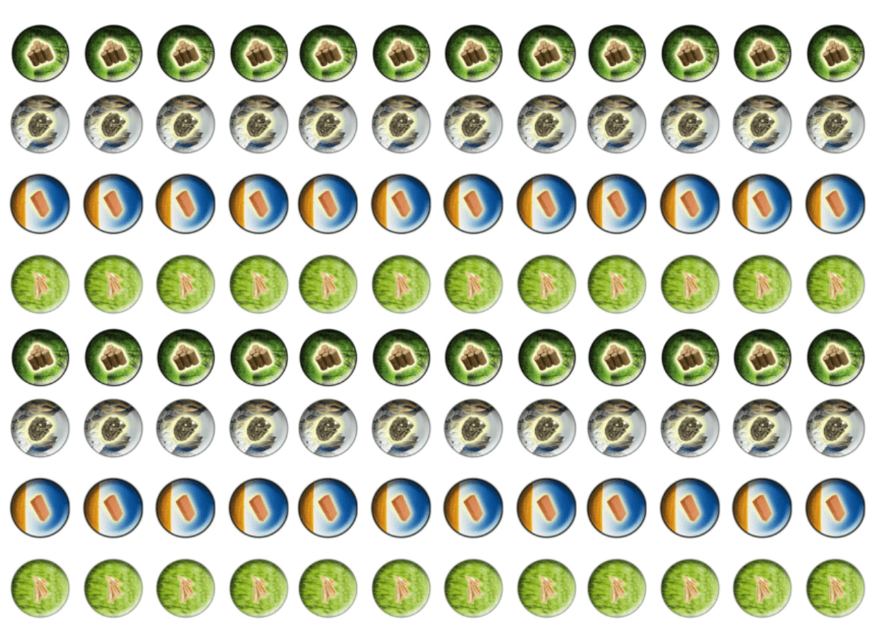 Ídolos de Acero adapta este sistema asociando colores a las diferentes provincias en las que se divide el tablero y asignado un recurso natural a cada una de ellas.