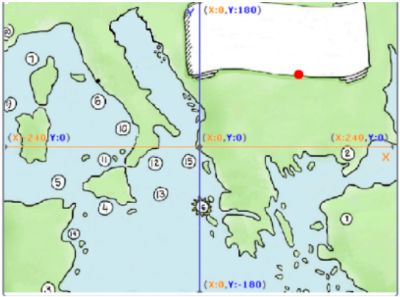 El sistema de coordenadas dentro de Scratch se define partiendo de la coordenada (x,y) = (0,0) en el centro de la zona de dibujo. El área de la zona de trabajo en Scratch queda determinada por: Esquina superior izquierda: (x,y) = (-240,180) Esquina inferior izquierda: (x,y) = (-240,-180).