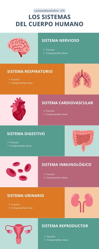 Instrucciones: Investiga sobre los sistemas del cuerpo humano (respiratorio, circulatorio, digestivo, etc.) y crea un póster informativo que destaque las funciones principales de cada sistema. Incluye ilustraciones y ejemplos para explicar su importancia.