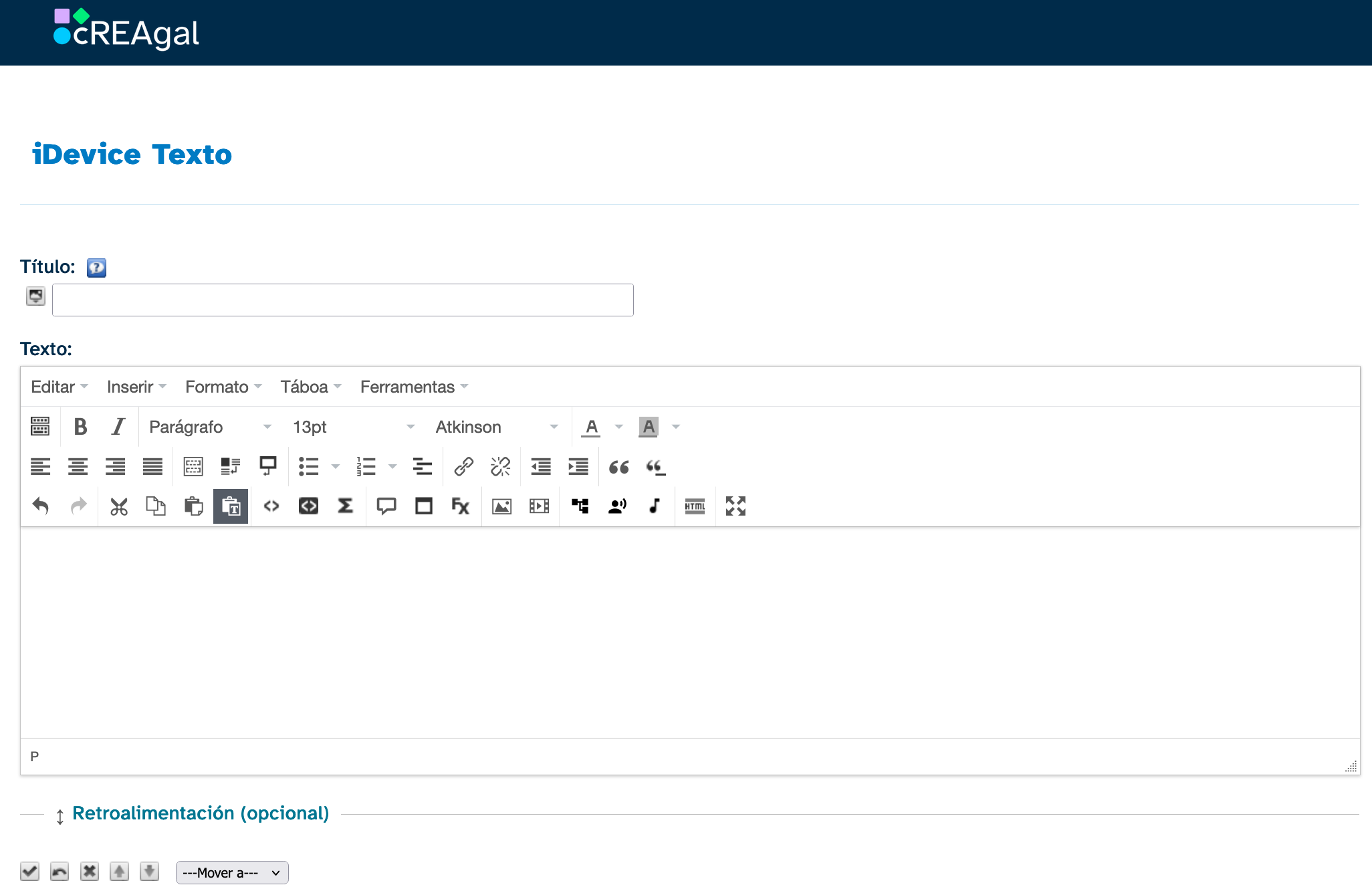 O iDevice Texto é un dos máis utilizados porque permite incluír todo tipo de contidos mediante o editor de textos: texto, imaxes, vídeos, materiais embebidos...