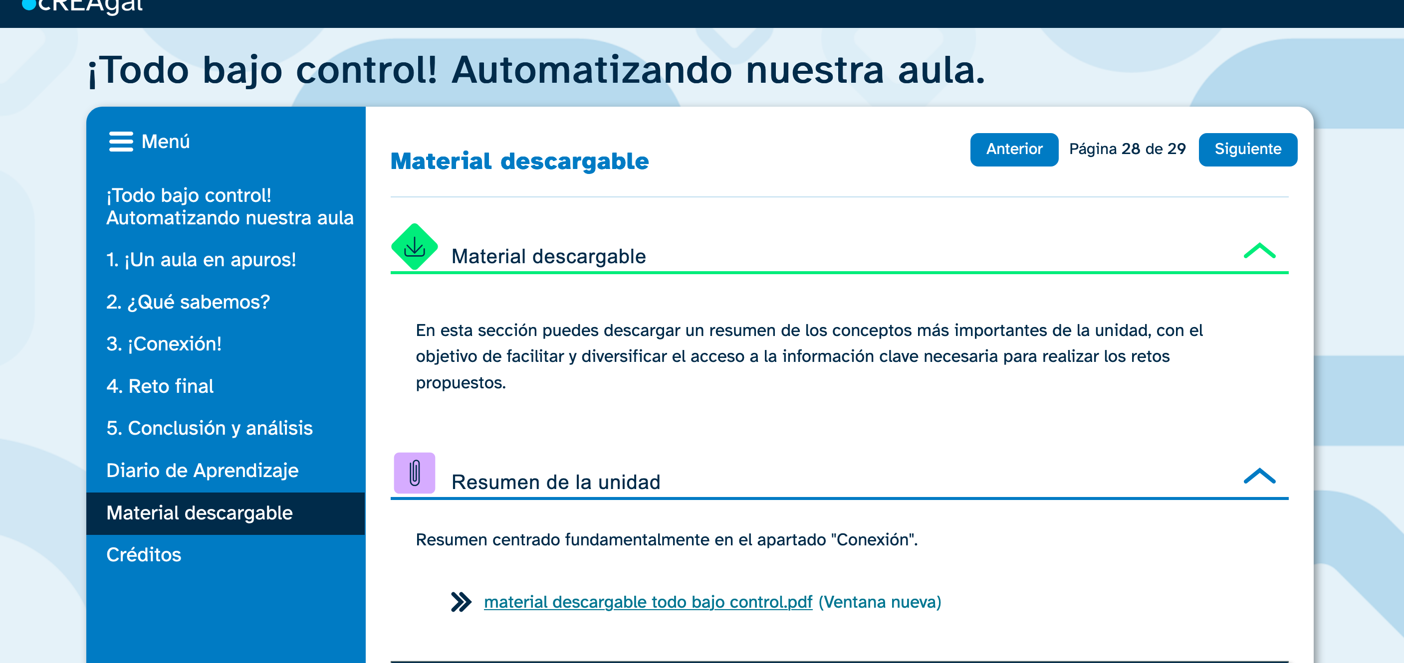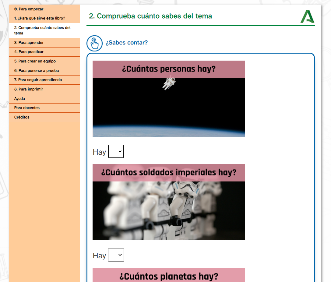 O contido do REA preséntase secuenciado en diferentes niveis de complexidade.