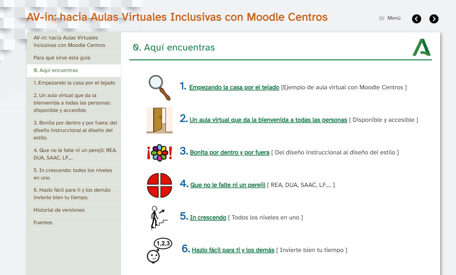 - Segue unha orde na presentación de cada apartado do menú e os elementos que o compoñen.