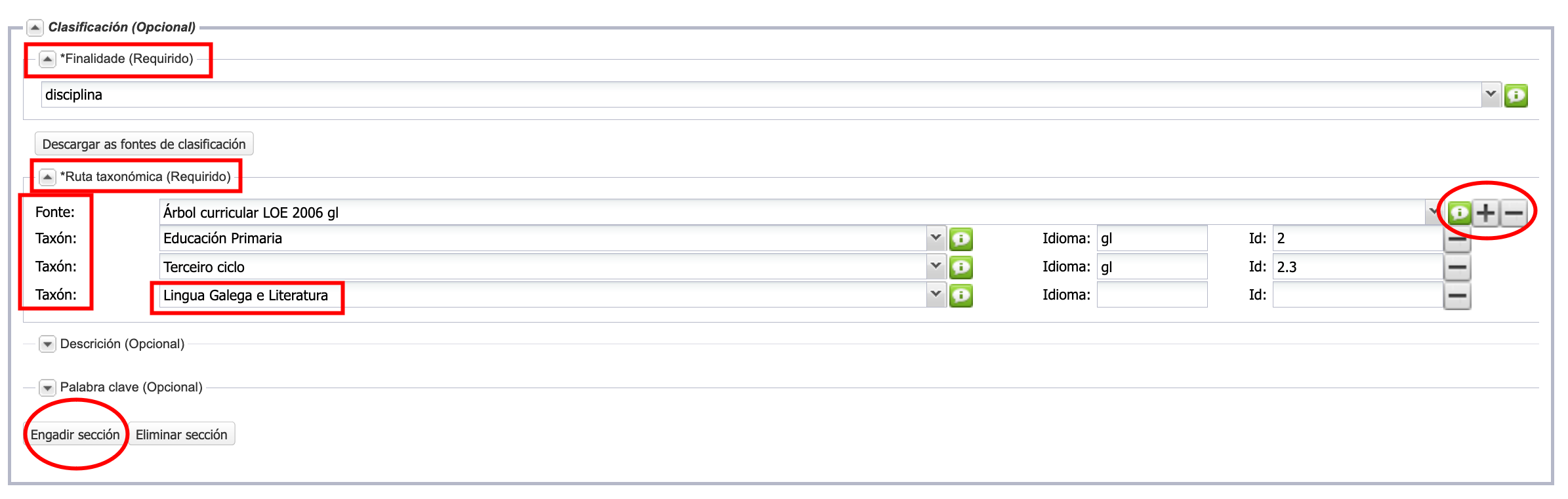 Por defecto cárganos as propiedades básicas. Para unha correcta catalogación necesitamos un maior nivel de detalle de estas propiedades, o que conseguimos pulsando o check Modo avanzado, situado na parte superior dereita da pantalla.