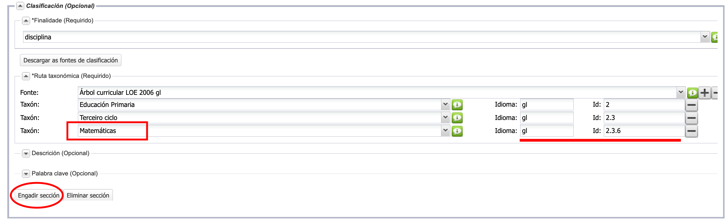 Unha vez en Propiedades, navegamos até a lapela Metadatos e escollemos o formato LOM-ES.