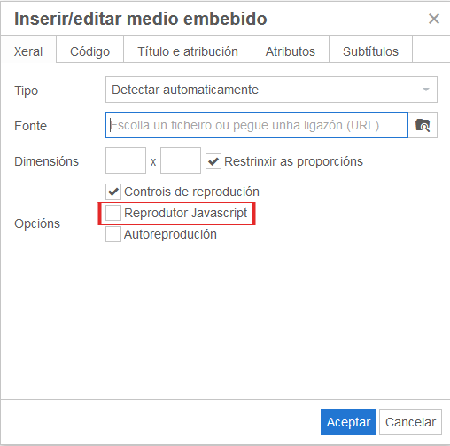 - Dentro do contido só se pode usar Descrición e Título (sae ao pasar o rato por encima), da primeira lapela de propiedades da imaxe (Para lector de pantalla). Non se enche o encabezamento.