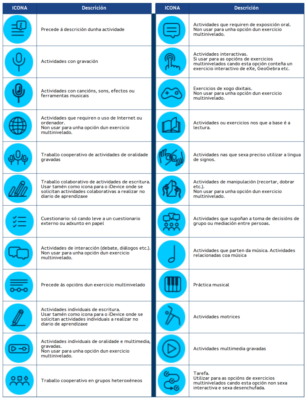 Uso común das iconas de eXeLearning no proxecto cREAal.