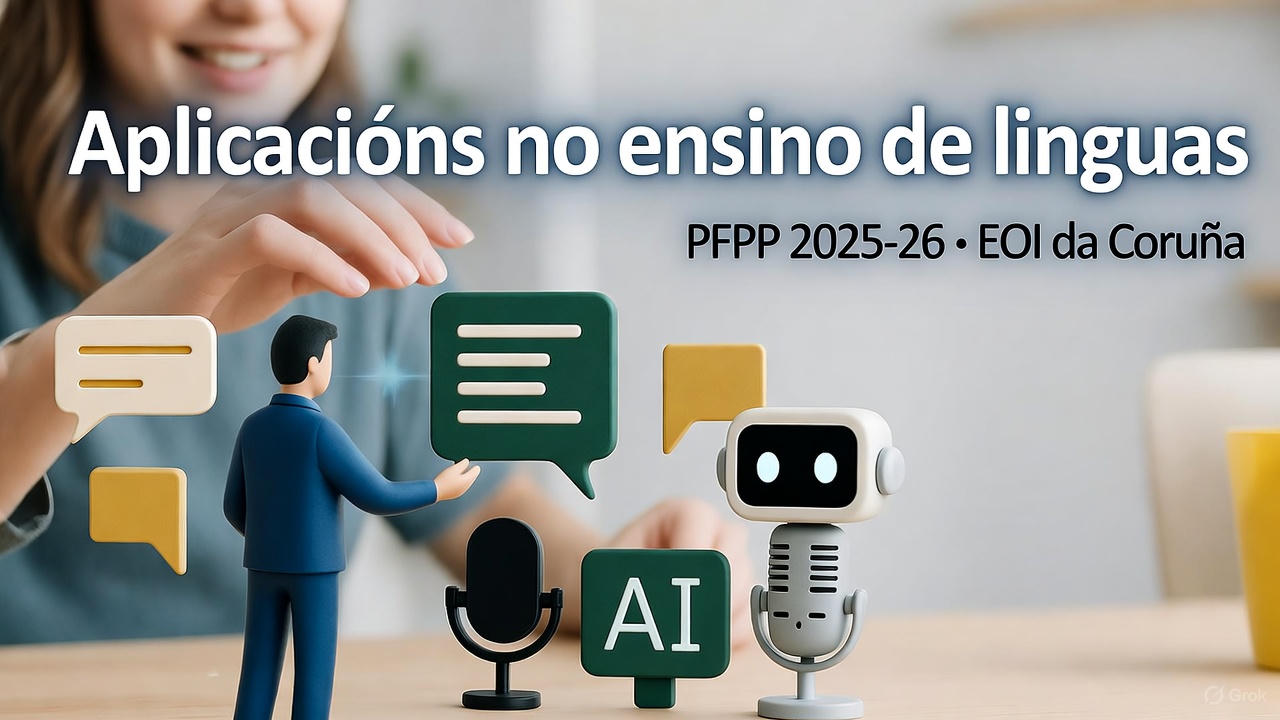 Este curso explora o potencial das aplicacións baseadas en intelixencia artificial no ensino de linguas. O profesorado aprenderá a empregar ferramentas como ChatGPT, Suno ou Dictation.io para crear materiais, fomentar a autonomía do alumnado e innovar na práctica docente.