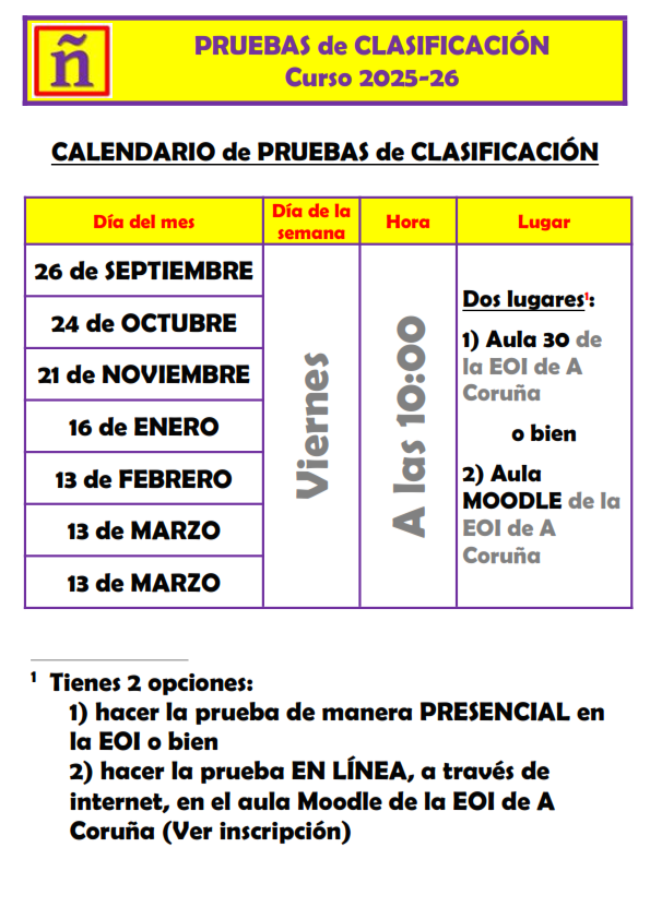 → Si quieres saberlo, haz clic aquí (Calendario de pruebas de CLASIFICACIÓN).