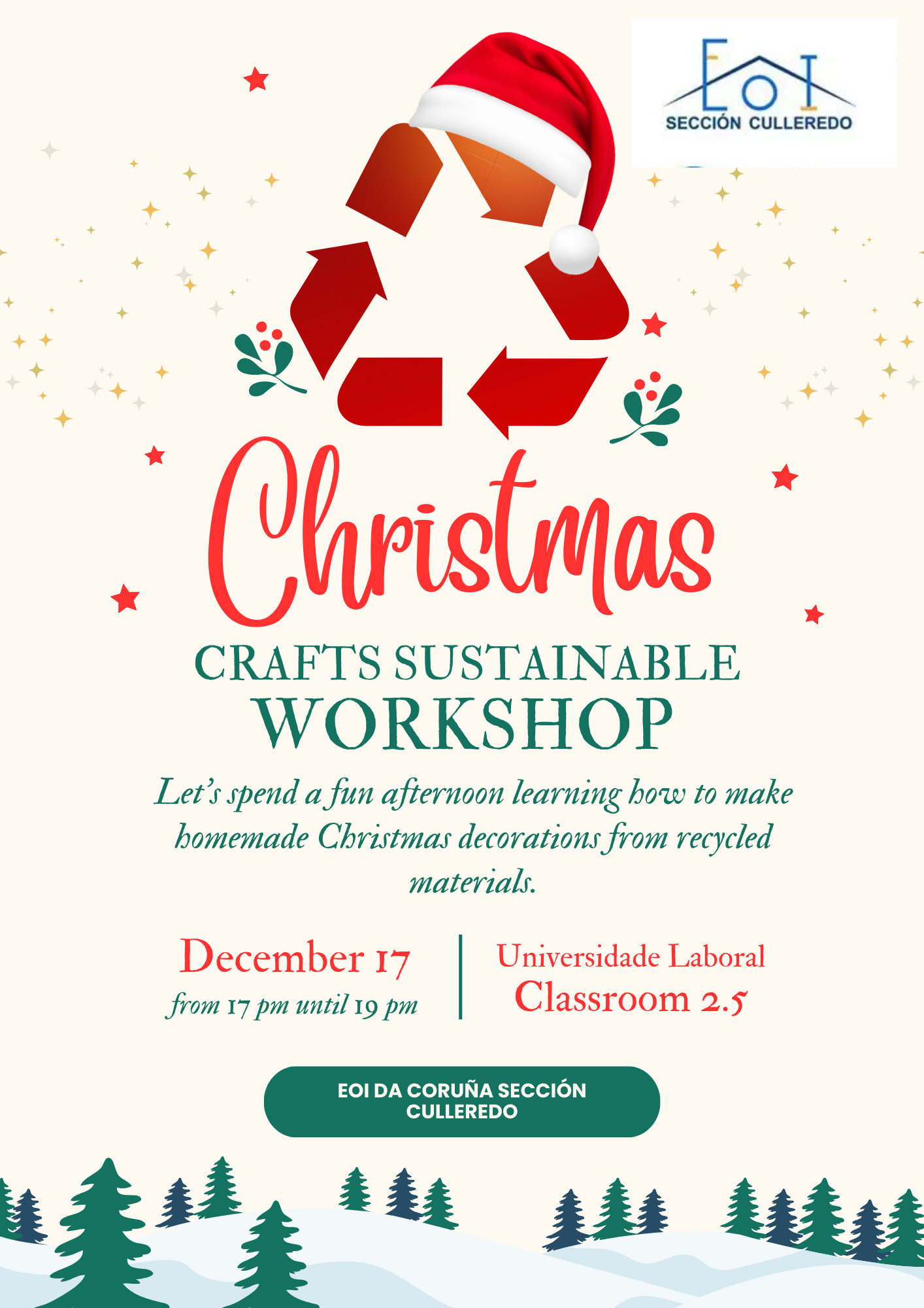 Entre os días 15 e 19 de decembro celebrarase o Mercadillo Solidario no CIFP Universidade Laboral, organizado por este centro e a Sección EOI Culleredo.