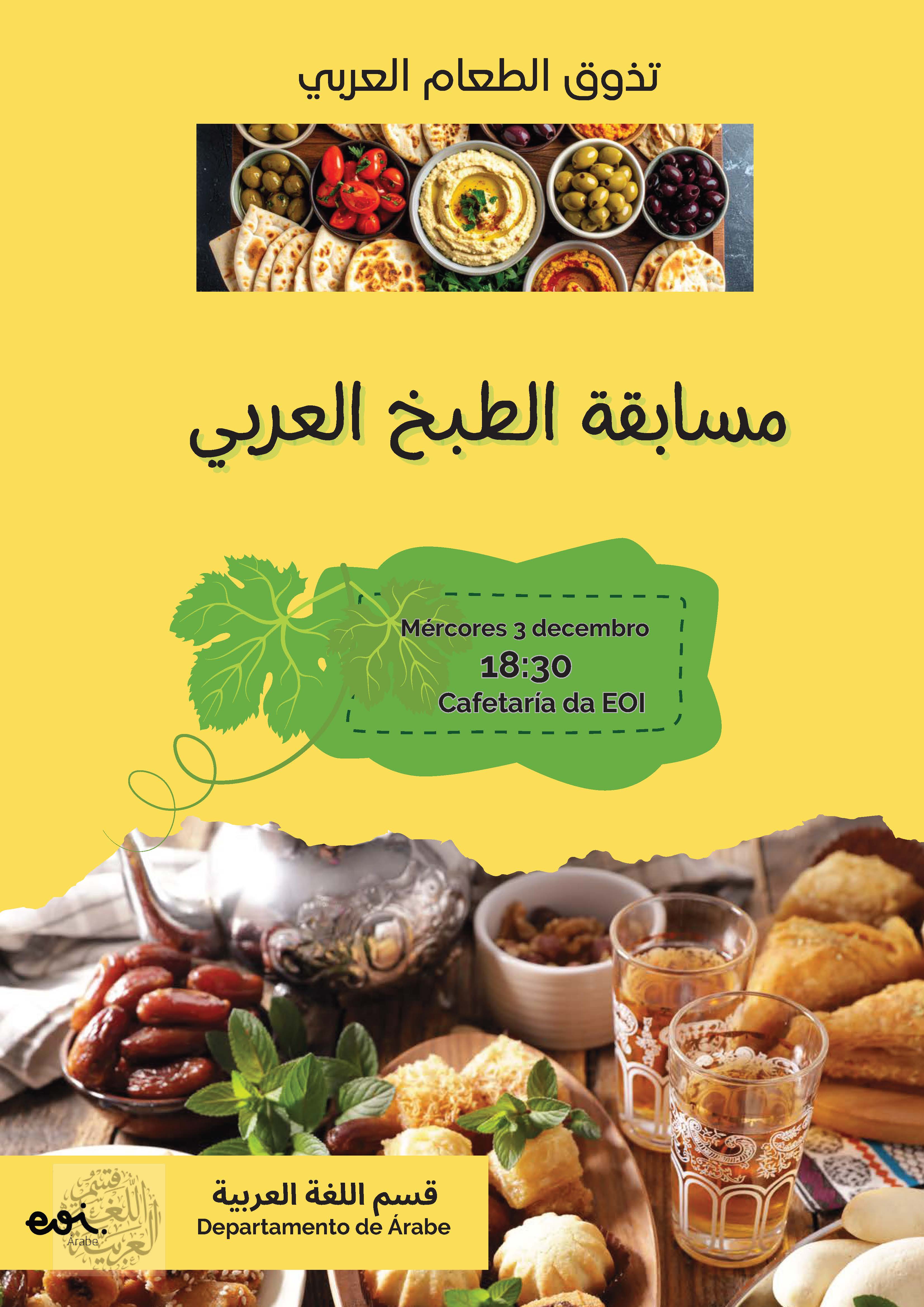 O Departamento está a organizar unha viaxe de inmersión lingüística e cultural a Mauritania para o Entroido de 2026. As persoas interesadas deberán poñerse en contacto coa xefatura do Departamento (eoi.corunha.arabe@edu.xunta.gal) antes do día 28 de novembro.
