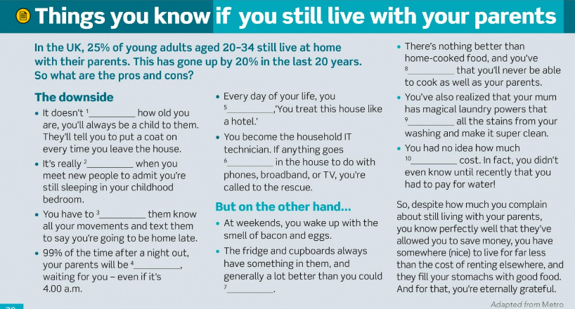 Read the article again and pick up the best word to complete the gaps: