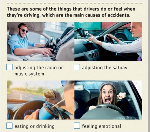 You're going to listen to an interview with a traffic safety expert. Listen and note down a number or fact about each of the dangerous activities you can do while driving, which is likely to result in a car accident.