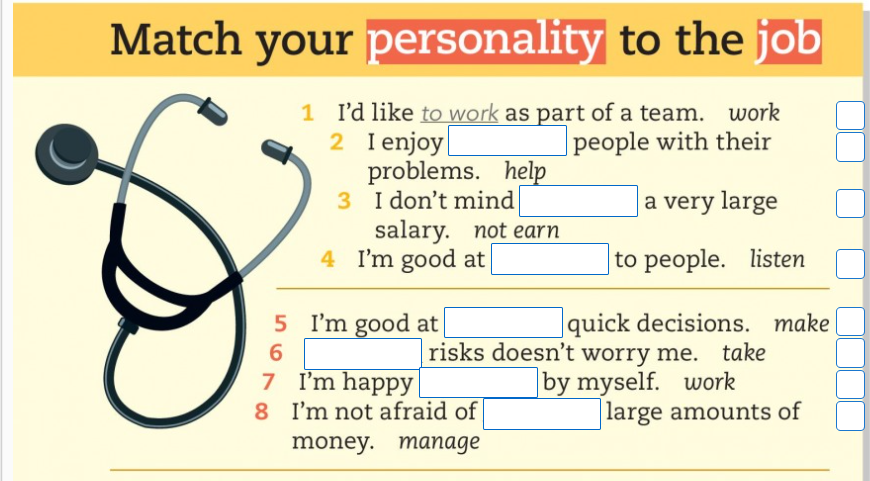 - It's now time to find out the right job for you. Match your personality to the job: (using the correct verb patterns):