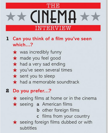 - Warm-up: Cinema interview: Do you have similar tastes?