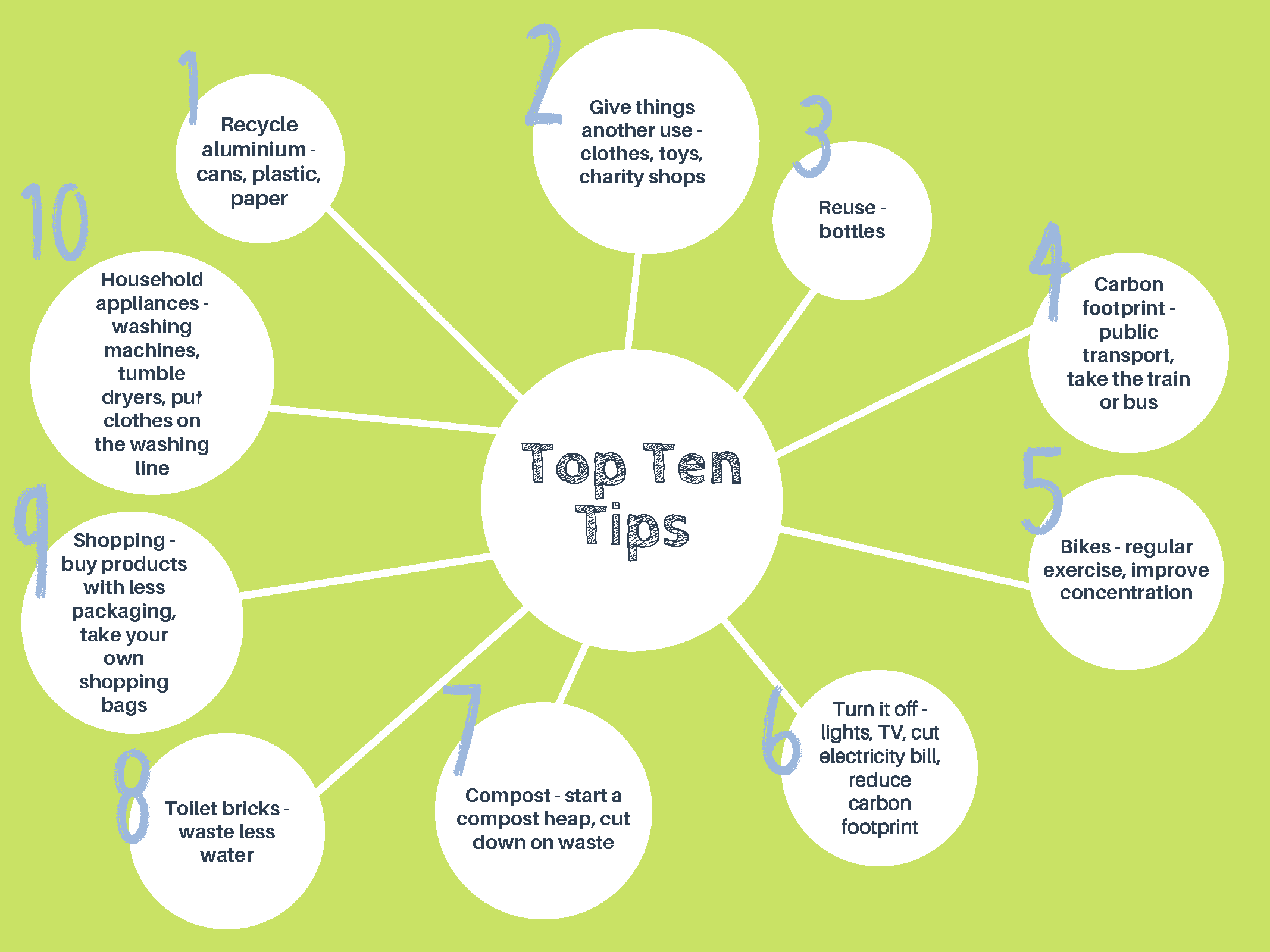 Now watch the video How to Be Environmentally Friendly in which 10 tips are given.