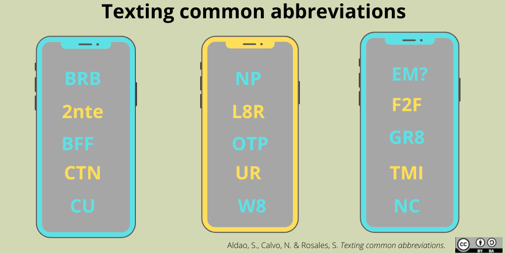 Smartphones may bring dangers but they have also improved our lives and changed the way we communicate in English. Texting is now more popular than making phone calls and we use lots of abbreviations to save time. Have a look at the chart below and try to guess their meanings