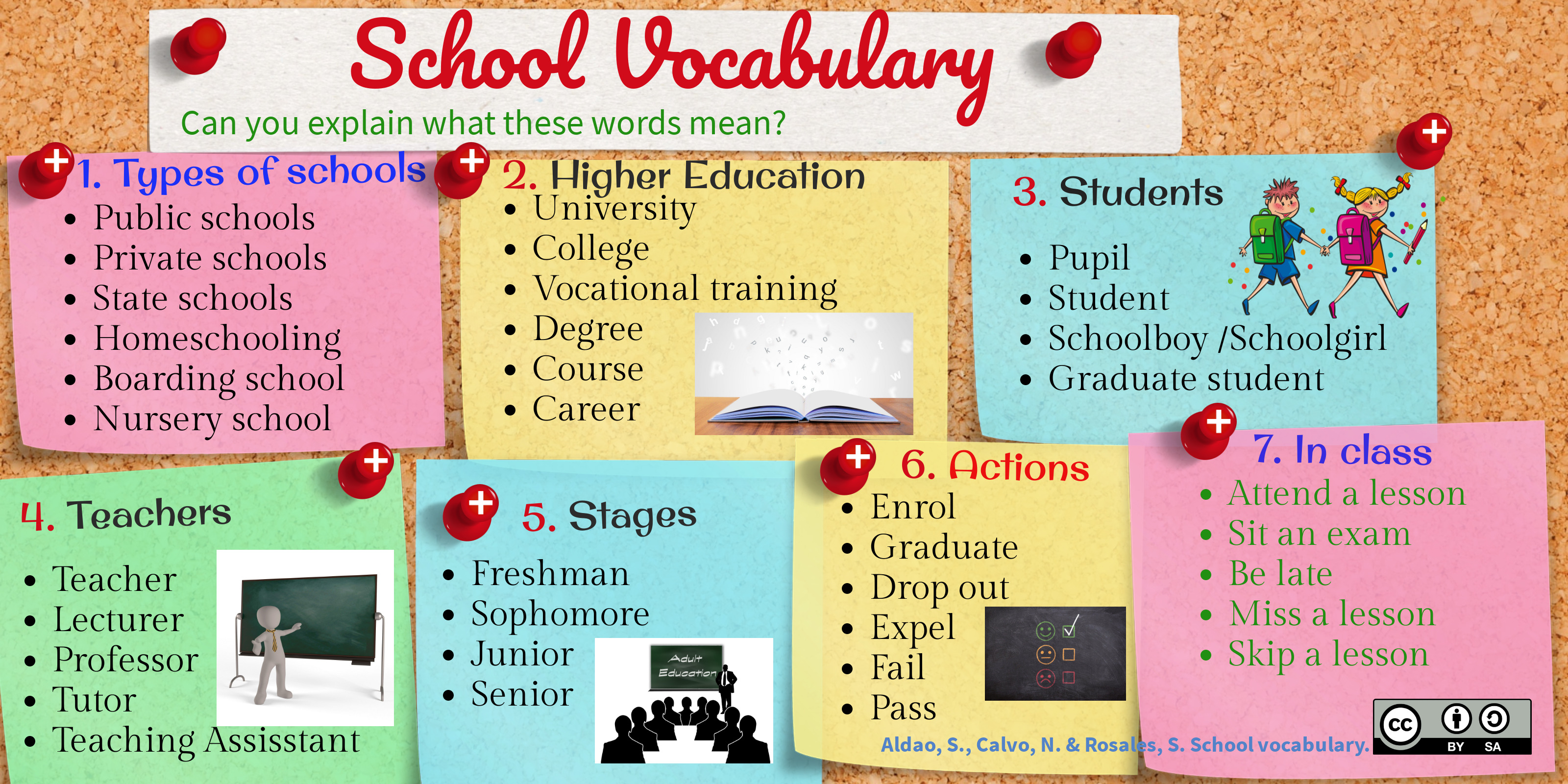 Some school vocabulary is similar to ours. You are going to work in groups and to find what the words in each post it mean, explain them in the Wiki and make a presentation in class.