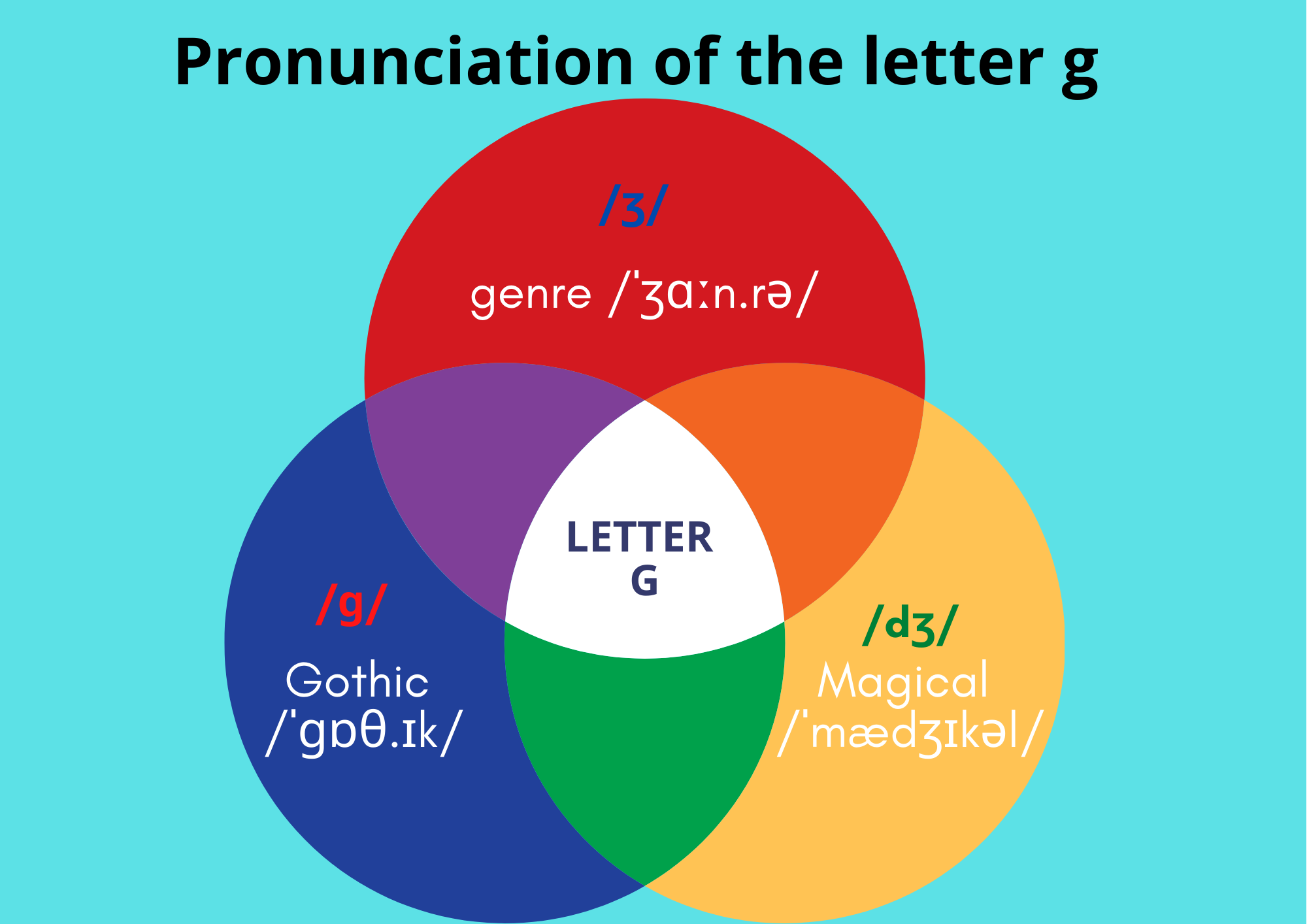 As you can see in the poster below, the letter G has 3 possible pronunciations: