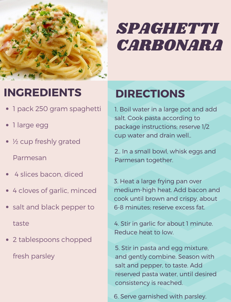 You can use the model for the Spaghetti Carbonara above. Also, these tips can help you:
