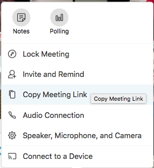 . Desplegaranse, entre outras, unha serie de opcións como invitar a novos participantes, enviar correo electrónico recordatorio, bloquear a reunión para que non poida entrar ninguén máis: