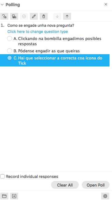 Esta opción é a chamada "Enquisa" ou "Polling". Podemos acceder a ela, como vimos no apartado anterior, premendo na icona