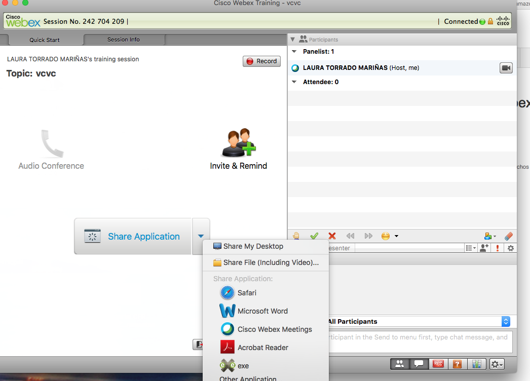 Debemos ter en conta que o organizador da sesión de capacitación e o(s) presentador(es) SEMPRE terán por defecto todos os privilexios asignados independientemente da configuración elixida por nós. Neste sentido, unha limitación de Webex Training é que os usuarios que se unen a unha sesión de capacitación dende a aplicación para iOS ou Android, é dicir, os usuarios que se conectan empregando os seus teléfonos móbiles, non poden crear sesións de grupo, malia que teñan asignados os privilexios pertinentes.