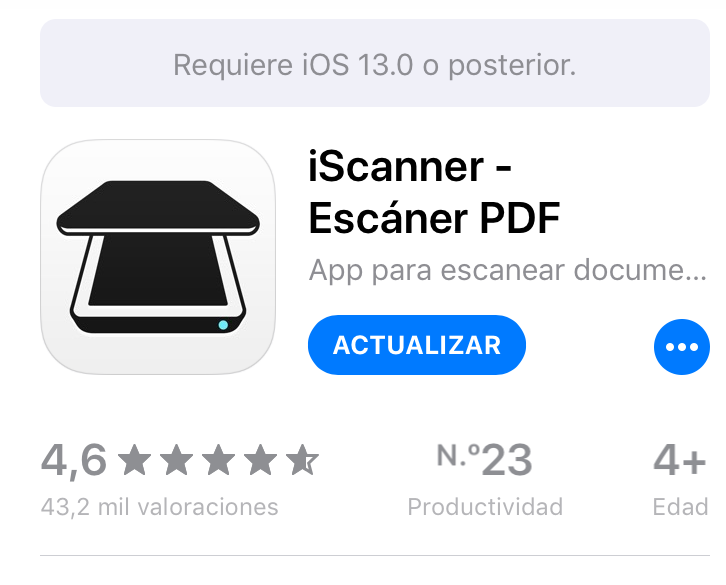 La aplicación iScanner es para dispositivos IOS