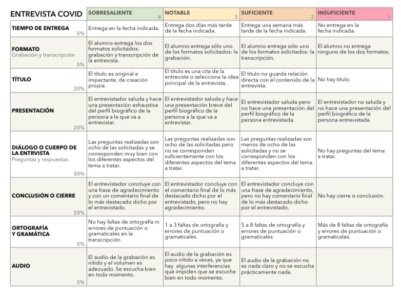 Este trabajo consiste en realizar una entrevista a alguien de vuestro entorno que para vosotros sea importante o que merezca la pena. El tema de la entrevista será el COVID-19. La persona elegida, que según vosotros merezca una entrevista, puede ser: