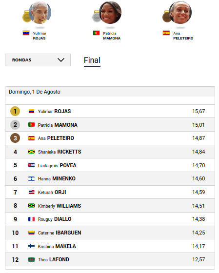 Fijíate en la clasificación de la final y en las marcas conseguidas por las atletas.
