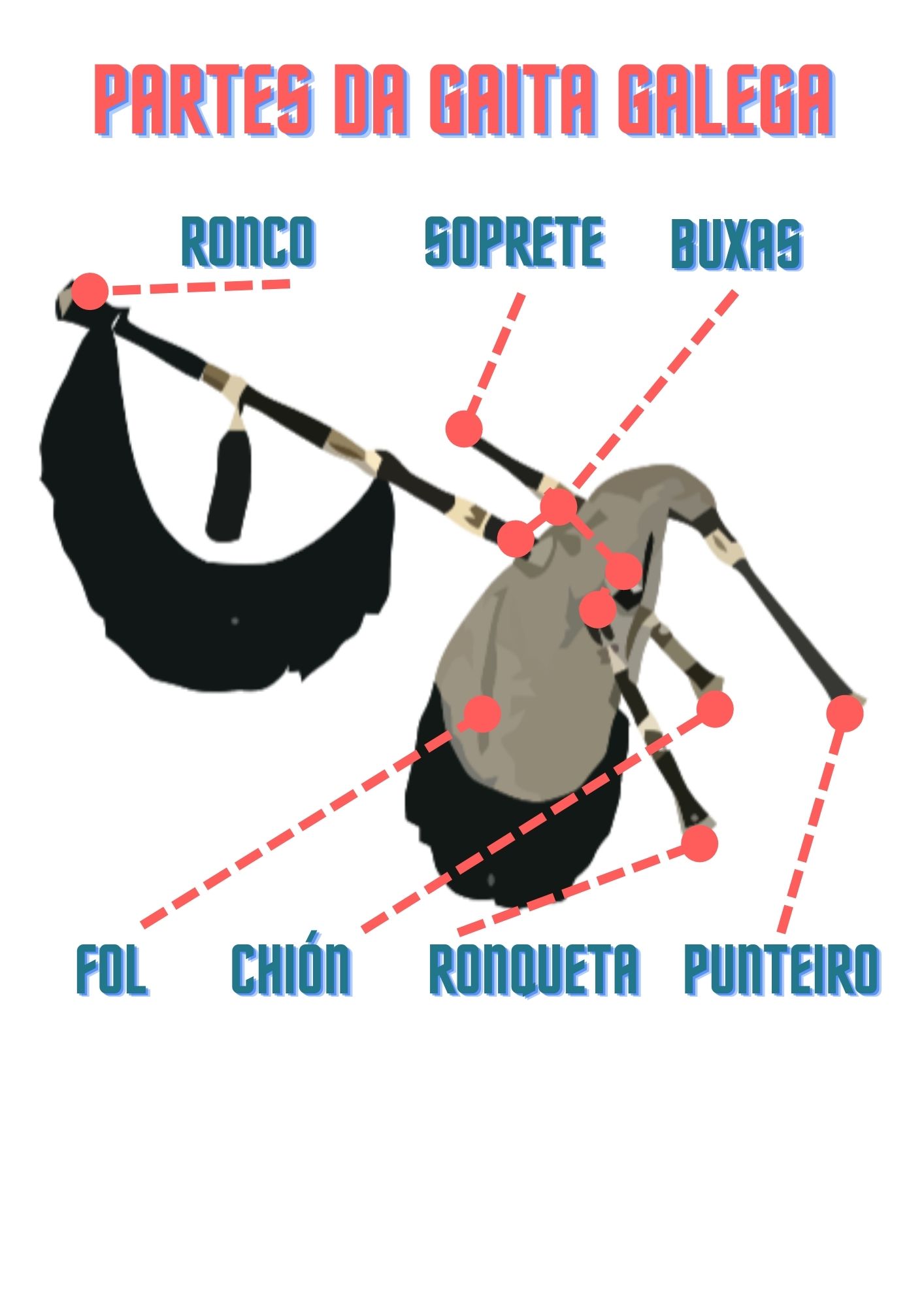 Podémola considerar como instrumento aerófono mixto, pois consta de lingüeta (no ronco e, se a ten, na ronqueta) e de palleta (no punteiro e no chión, se o ten).