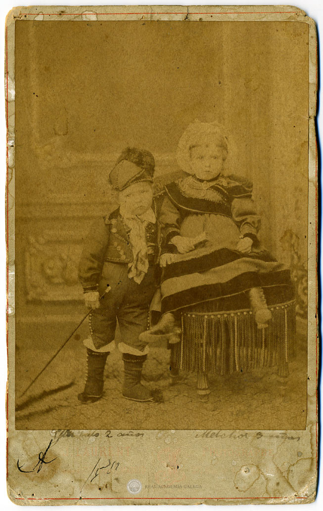 Retrato de nenos con traxes tradicionais galegos (1874). Antonio Eulaty. Galiciana. Dominio público
