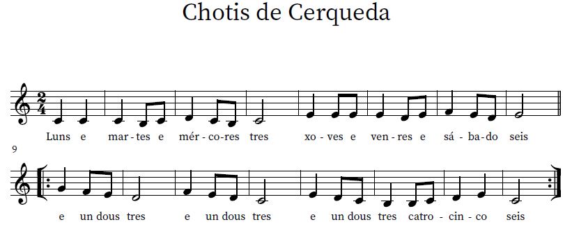 Este chotis cántano e báilano ao mesmo tempo. Recolleuse en distintas zonas do país, dende Bergantiños (A Coruña) ata terras da Gudiña (Ourense).