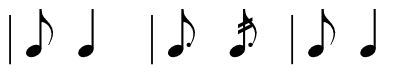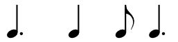 Este grupo rítmico aparece tocado seguido ou combinándose con algunhas destes toques ou outros equivalentes:
