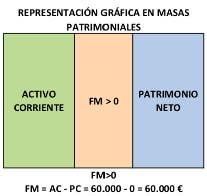 Para realizar el análisis patrimonial calcularemos el fondo de maniobra y representaremos gráficamente la situación.