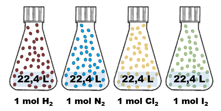 Se considera que el volumen molar de cualquier gas en CONDICIONES NORMALES (1 atm de presión y una temperatura de 0ºC) es de 22,4L