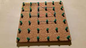 Material:5 tablas de corcho de 19 cm x 19 cm, chinchetas y gomas elásticas de diferentes colores.