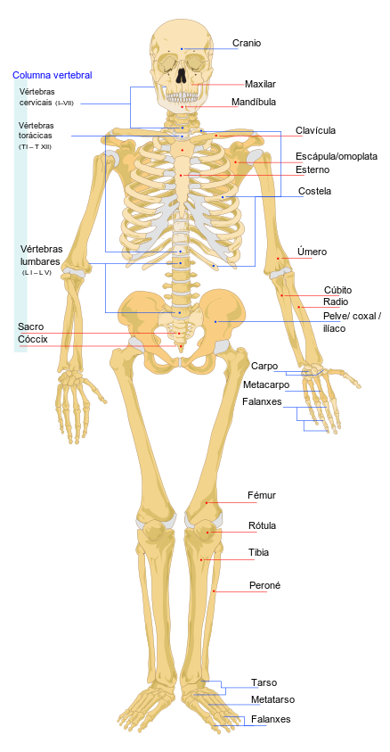 Os seres humanos como invertebrados que somos, estamos dotados dun esqueleto interno. Temos máis de 206 ósos pero nós estudiaremos só algúns.