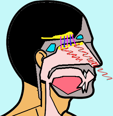 Co sentido do olfato percibimos múltiples olores. Distintas investigacións intentaron facer unha clasificación de olores primarios (puros) e secundarios (mezcla de olores), sen lograr unha clasificación satisfactoria. O sentido do olfacto está relacionado co sentido do gusto. Tal como observamos nas distintas imaxes, a boca e a cavidade nasal están comunicadas. Cando comemos e mastigamos, os alimentos liberan aromas que chegan ata o nariz e que de ser agradables fan que nos guste o menú. |