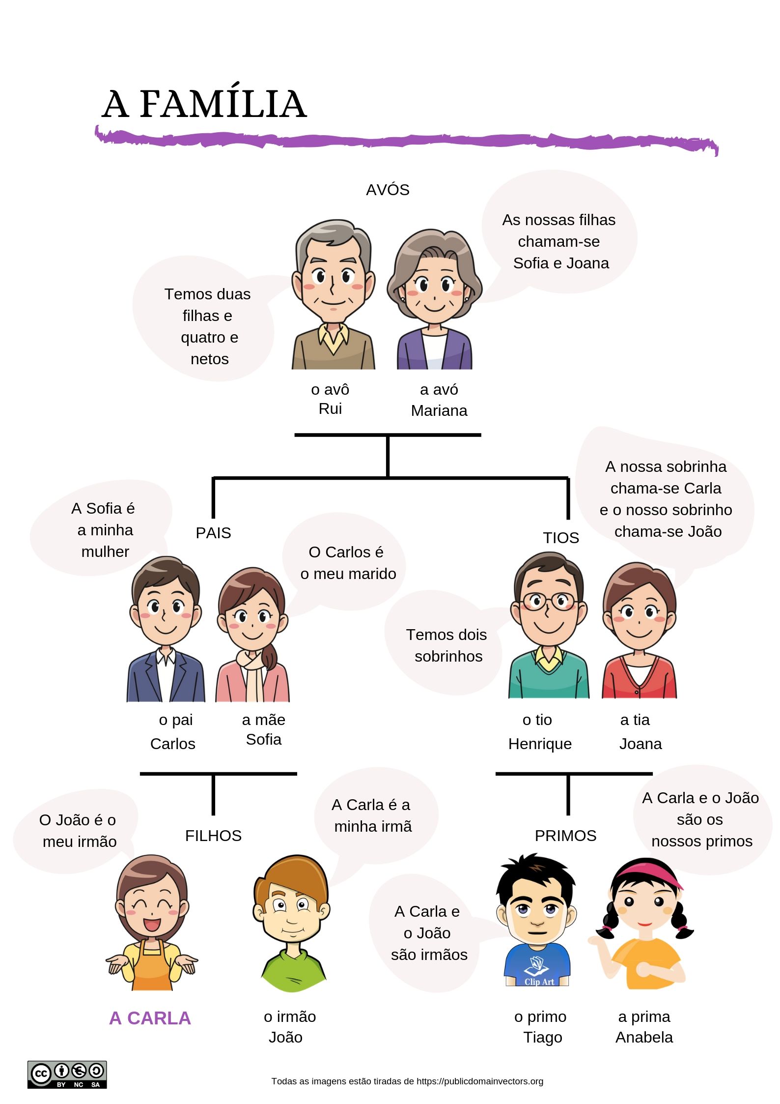 Leia o parágrafo seguinte e preencha as palavras em falta de acordo com a árvore genealógica da Carla.