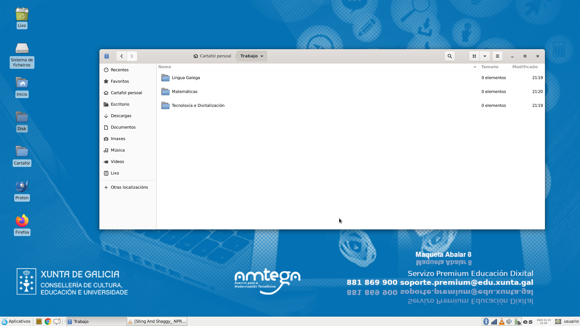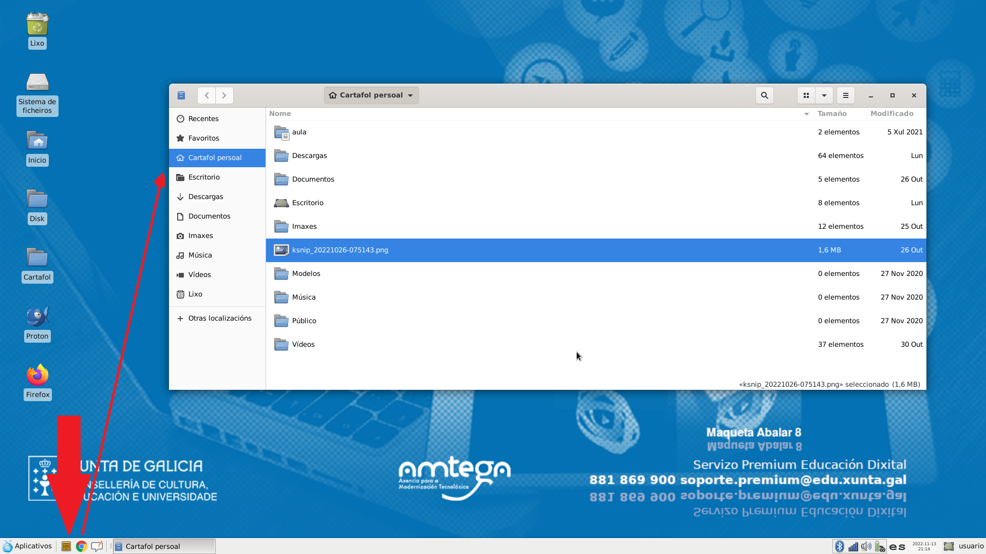 Nuestro ordenador incorpora varios exploradores de ficheros que permiten visualizar y gestionar ficheros y carpetas. Uno de estos exploradores de ficheiros es Nautilus. En la siguiente image vemos este explorador de ficheiros mostrando el contenido de la carpeta del usuario.