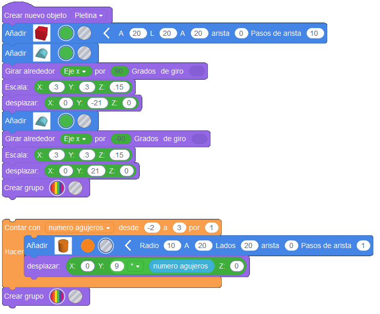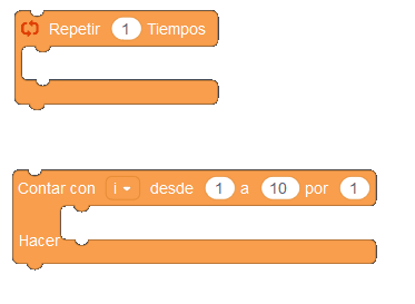 Bucles Conjunto de bloques para repetir acciones con los grupos de formas |