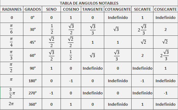 Razones trigonométricas de ángulos notables, tablas y deducción