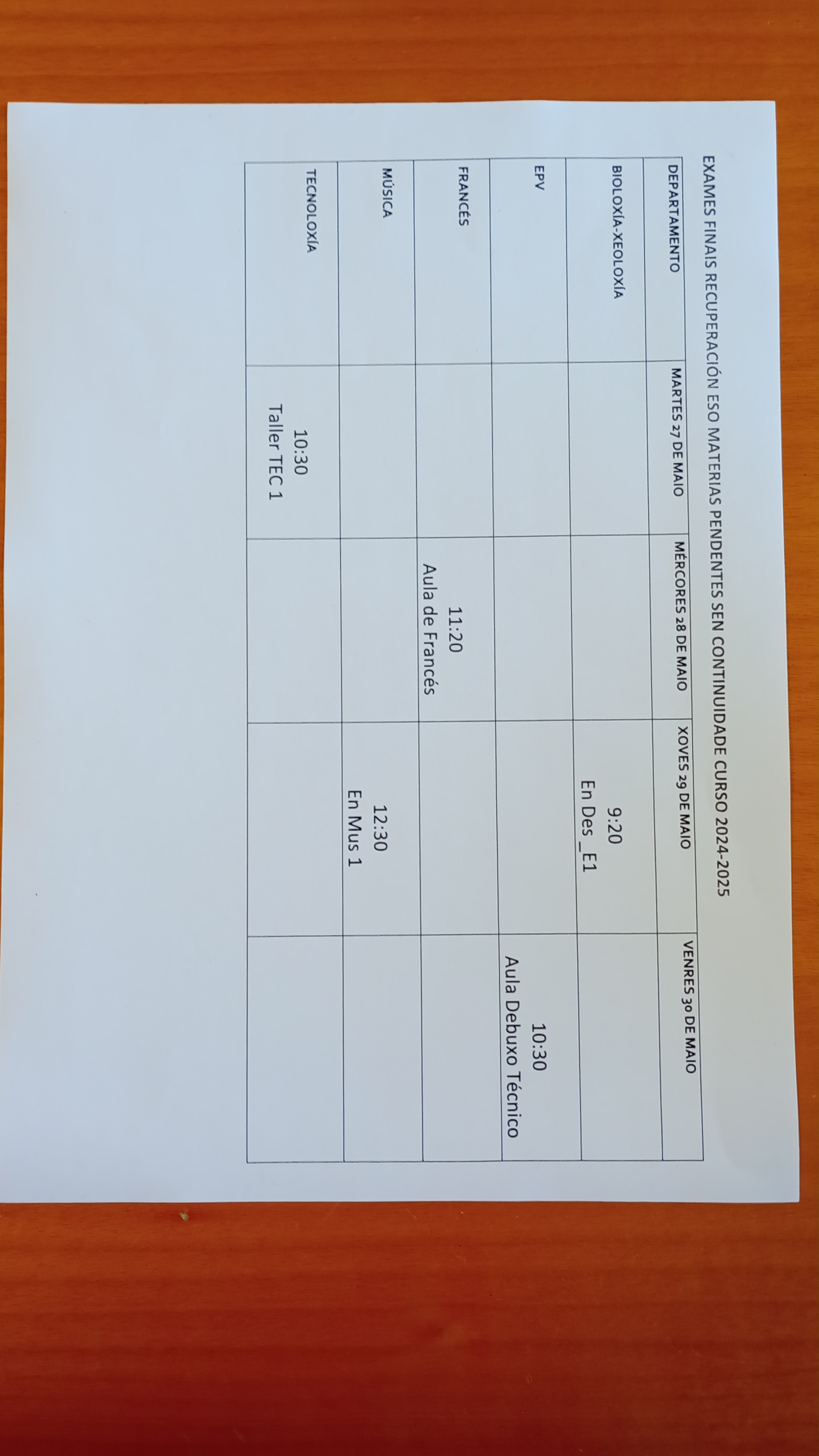 CALENDARIO DE EXAMES DA 3ª AVALIACIÓN