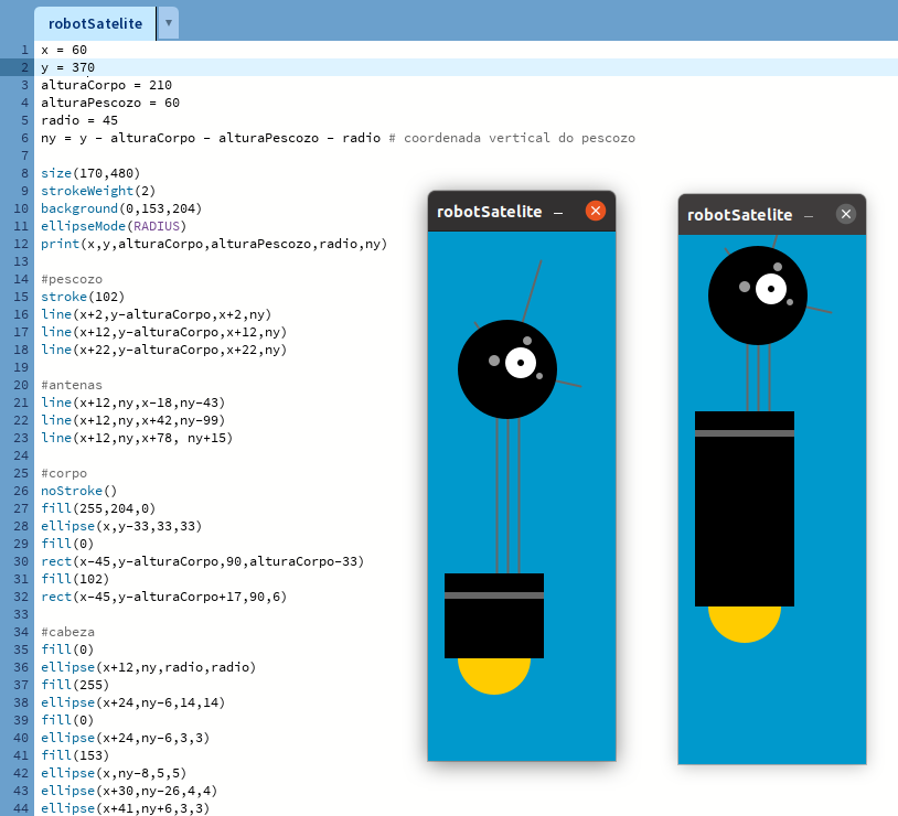 Copia o código para debuxar o robot satélite.