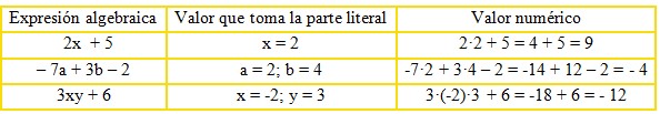 El valor numérico es el valor que toma la expresión algebraica cuando sustituimos las letras por números y realizamos las operaciones: