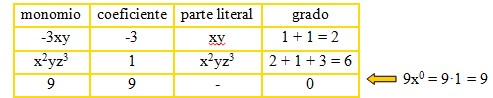 El grado de una letra es el exponente al que está elevada. Llamamos grado de un monomio a la suma de los grados de las letras que forman la parte literal.