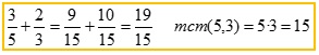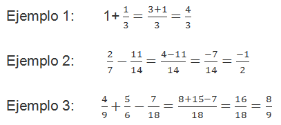 Para pasar fracciones a común denominador se busca el mínimo común múltiplo de los denominadores, y se pone de denominador de todas. Cada numerador se halla dividiendo el mcm por el denominador de su fracción y multiplicándolo por el numerador. Finalmente se suman o se restan los denominadores y se pone el mismo denominador:Multiplicación de fracciones: