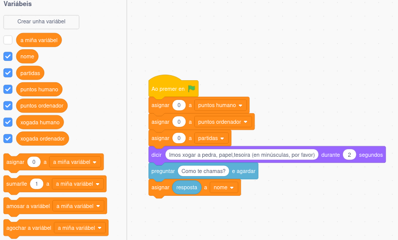E facemos unha cousa importante: resetear as variables ata 0 ao principio da partida. Isto é fundamental por que as variables quedan gardadas dunha partida a outra.